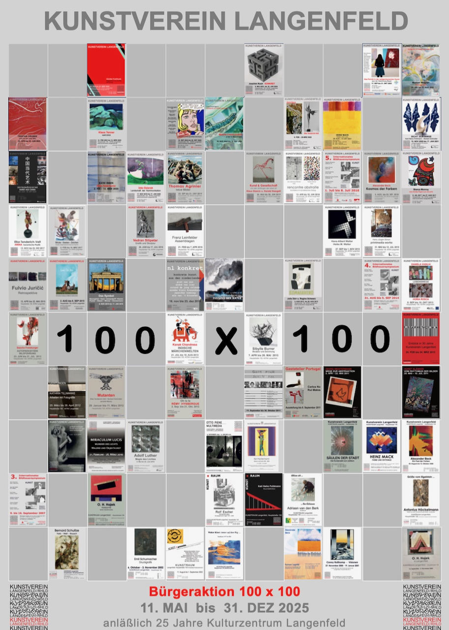 Seien Sie einer von 100 Bürgerinnen und Bürgern, die bis zum 31. Dezember 2025 einmalig 100 Euro spenden, um die Arbeit des Kunstvereins Langenfeld e.V. zu unterstützen: